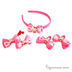 Аксессуары Hello Kitty производятся с использованием только гипоаллергенных материалов и оригинальных кристаллов Swarovski. Ободок диаметр: 115 мм, все бантики: ширина 35 мм, длина 55 мм. Браслет диаметр 40 мм (на резинке, длина регулируется).