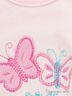Распашонка с длинным рукавом застегивается на кнопки. Полочка украшена нашивкой и вышивкой.