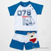 Комплект для мальчика из тонкого трикотажа средней эластичности. Состоит из футболки и шорт. Футболка с круглым вырезом и коротким рукавом. Застегивается на кнопки, на полочке оригинальная аппликация. Шорты на резинке декорированы нашивкой.