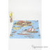 Красочный рисунок с морским уголком, островами, укрепленным фортом и кораблями фигурки на устойчивых подставках.