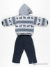 Комплект из 2-х предметов. Курточка с капюшоном утеплена синтепоном и застегивается на молнию на полочке. Манжета на рукавах и по низу изделия. Верхняя ткань - трикотаж с рисунком. Подкладка мягкий длинноворсовый флис. Брюки: верхняя ткань - трикотаж, утеплены синтепоном, пояс на резинке.
