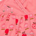 Комплект состоящий из двух предметов: болеро, платье. Болеро с короткими рукавами и застежкой на пуговицу, украшено нашивкой. Платье на тонких бретелях, низ расклешен, верх с запахом, изделие украшено набивным принтом и прострочкой.
