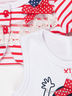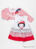 Комплект из 2-х предметов. Трикотажный сарафан с принтом на полочке. Яркое болеро на 2-х пуговицах, с бантиками и декоративной отделкой.