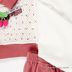 Толстовка с длинным рукавом застегивается на пуговицы. Манжеты и низ изделия - трикотажные резинки. Два передних кармашка. Округлый вырез горловины и карманы декорированы. Спинка украшена нашивкой.