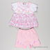 Детский комплект из двух предметов. Легкое полупрозрачное платье с округлым вырезом горловины, рукава "фонарики", застежка на пуговицы. Шорты с эластичной резинкой в поясе, украшены рюшами.