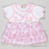 Детский комплект из двух предметов. Легкое полупрозрачное платье с округлым вырезом горловины, рукава "фонарики", застежка на пуговицы. Шорты с эластичной резинкой в поясе, украшены рюшами.