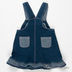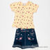 Комплект из двух предметов. Футболка с округлым вырезом горловины и короткими рукавами, застежка на пуговицы. Комбинезон на лямках, застегивается на пуговицы, спереди два втачных кармана, сзади два накладных.