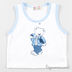 Мягкий трикотажный комплект, состоящий из майки, шорт и рубашки. Рубашка с отложным воротничком и накладным карманом. Застежка на пуговицы. Яркая аппликация на полочке. Майка декорирована оригинальным набивным рисунком на полочке. Короткие шорты на плотной резинке.