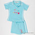 Комплект из двух предметов, футболки и шортов. Футболка с отложным воротником и V-образным вырезом, короткие рукава, полочка украшена прострочкой. Шорты с широкой эластичной резинкой в поясе, спереди декоративный бант и эффект запаха, сзади накладной карман.