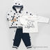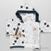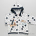 Комплект, состоящий из трех трикотажных предметов: курточка, джемпер, брюки. Толстовка с капюшоном. Центральная застежка на молнию. Длинные рукава с эластичными манжетами. Принт на полочке. Эластичная манжета по низу изделия. Ткань с рисунком. Лонгслив с круглым вырезом горловины. Длинные рукава. Принт на полочке. Брюки на резинке. Эластичная манжета на брючинах.