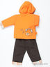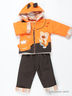 Мягкий демисезонный комплект из тонкой плащевки с тонким синтепоновым утеплителем и с хлопковой подкладкой состоит из куртки и брюк. Куртка с глубоким капюшоном застегивается на молнию, длинный прямой рукав, декоративный кармашек, множество аппликаций и вышивок на полочке в виде медвежат. Брюки на резинке, два кармана в боковых швах.