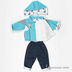 Мягкий и теплый комплект, состоящий из куртки и брюк на синтепоновой подкладке. Куртка с капюшоном застегивается на молнию, полочка декорирована аппликацией. Два кармана. Брюки на плотной резинке. Дополнены врезными карманами.