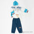 Толстовка с капюшоном застегивается на молнию на полочке. Манжеты и низ изделия - трикотажные резинки. Два передних кармана. Изделие украшено аппликациями, нашивками и вышивкой.