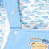 Толстовка с отложным воротом утеплена синтепоном и застегивается на пуговицы на полочке. Изделие украшено принтами.
