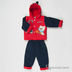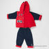 Мягкий и теплый комплект, состоящий из куртки и брюк на синтепоновой подкладке. Куртка с капюшоном застегивается на пуговицы, полочка декорирована вышивкой. Два кармана. Брюки на плотной резинке.