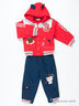 Мягкий демисезонный комплект из тонкой плащевки с тонким синтепоновым утеплителем и с флисовой подкладкой состоит из куртки и брюк. Куртка с глубоким капюшоном застегивается на молнию, длинный прямой рукав, декоративный кармашек. Брюки на резинке, два кармана в боковых швах.