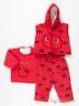 Комплект из 3-х предметов. Трикотажное полотно, утепление синтепоном, подкладка хлопок. Жилет на пуговицах с капюшоном, утеплен синтепоном, принтованная ткань, аппликация. Лонгслив из трикотажа, утеплен синтепоном, с округлым вырезом горловины и с длинным прямым рукавом, застежка на пуговицы на плече, полочка декорирована аппликацией. Брючки с принтом, пояс на резинке.