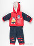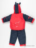 Комплект из 2-х предметов. Верхняя ткань - болоньевая плащевка. Курточка с капюшоном утеплена синтепоном и застегивается на кнопки на полочке. Капюшон с "ушками". Подкладка - флис. Брюки утеплены синтепоном, пояс на резинке. Подкладка - хлопок. Изделие украшено нашивками.