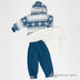 Комплект 3 предмета: курточка, джемпер, брюки. Толстовка с капюшоном. Центральная застежка на молнию. Длинные рукава с эластичными манжетами. Принт на полочке. Эластичная манжета по низу изделия. Ткань с рисунком. Лонгслив с круглым вырезом горловины. Длинные рукава. Принт на полочке. Брюки на резинке. Эластичная манжета на брючинах.