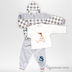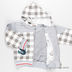 Комплект, состоящий из трех трикотажных предметов: курточка, джемпер, брюки. Толстовка с капюшоном. Центральная застежка на молнию. Длинные рукава с эластичными манжетами. Эластичная манжета по низу изделия. Ткань с рисунком. Лонгслив с круглым вырезом горловины. Длинные рукава. Принт на полочке. Брюки на резинке.