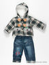 Комплект из 2-х предметов. Курточка с капюшоном утеплена синтепоном и застегивается на пуговицы на полочке. Принт на спинке. Верхняя ткань - трикотаж. Подкладка мягкий длинноворсовый флис. Брюки: верхняя ткань - джинса, утеплены синтепоном, пояс на резинке. Подкладка - хлопок.