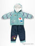 Комплект из 2-х предметов. Верхняя ткань - болоньевая плащевка. Курточка с капюшоном утеплена синтепоном и застегивается на кнопки на полочке. Капюшон с "ушками". Подкладка - флис. Брюки утеплены синтепоном, пояс на резинке. Подкладка - хлопок. Изделие украшено нашивками.