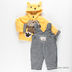 Курточка из мягкого искусственного меха на синтепоне, на пуговицах. Капюшон с "ушками". Аппликация на полочке. Полукомбинезон на отстегивающихся бретелях на синтепоне.