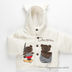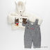 Курточка из мягкого искусственного меха на синтепоне, на пуговицах. Капюшон с "ушками". Аппликации и карман на полочке. Полукомбинезон на лямках на синтепоне.