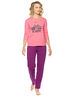 Комплект женский: джерси и брюки. Джерси умеренного объема с втачным узким рукавом. Стойкий эластичный принт. Перевод Не волнуйся. Будь счастлив. Брюки прямого кроя небольшого объема с внутренней резинкой по поясу.
