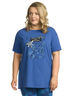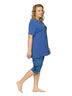 Комплект женский: туника и лосины. Туника комфортного объема со спущенным плечом, свободным рукавом и небольшим перепадом длин. Боковые швы переведены вперед, внизу - небольшие разрезы. Разноцветный металлизированный принт. Перевод: Стремись вдохновлять. Лосины из приятного к телу принтованного трикотажа.