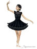 Стильный бальный комплект состоит из боди, юбки с подъюбником и ободка для волос. Боди с коротким рукавом-фонариком. Ворот-стойка. Полочка дополнена вставкой из сетки. Короткая расклешенная юбка с пышным подъюбником.