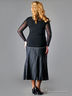 Детали: кофта с длинным прозрачным рукавом; V-образный вырез с запахом; вставка с оригинальным принтом; юбка расклешенная к низу с декоративными элементами
