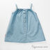 Комплект состоит из платья и трусиков. Модель платья расклешенного кроя застегивается на спинке на пуговицы по всей длине изделия. На полочке декоративная вышивка и нашитые вязаные цветы. К подолу пришита хлопковая тесьма. В пройму для ног и в пояс трусиков вшиты резинки.