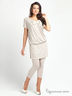 Детали: туника с округлым вырезом горловины декорирована бантом, короткие цельнокроеные рукава и боковые разрезы; облегающие бриджи.
