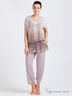 Повседневный комплект свободного кроя. Выполнен из приятного на ощупь материала. Блуза с v-образным вырезом, короткие рукава, заниженная талия на резинке. Укороченные прямые брюки.