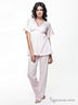 Детали: футболка с V-образным вырезом горловины с запахом, отрезным лифом, завышенной линией талии, рукава с разрезиками; прямые брючины.