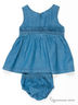 Детали: платье с тонкими бретелями, пояс на резинке декорирован оборкой и бантиком, юбка с бантовыми складками, застежка на молнию. Трусики на резинке.