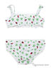 Комплект нижнего белья для девочки, состоящий из топа и трусов, выполнен из эластичного трикотажа с ярким рисунком божьих коровок. Топ на регулируемых бретелях, края топа и пояс трусов декорированы эластичной кружевной тесьмой. Края трусов - резинка.
