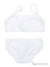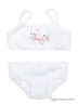 Комплект нижнего белья для девочки, состоящий из топа и трусов, выполнен из эластичного трикотажа. Топ на регулируемых бретелях, края топа декорированы эластичной кружевной тесьмой. Края трусов - резинка, а пояс декорирован эластичной кружевной тесьмой с бантиком.