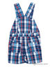 Хлопковый полукомбинезон в клетку. Модель на регулируемых по длине бретелях на пуговицах. Застежка - пуговицы, расположенные по бокам. На талии сзади регулируемая внутренняя резинка. Карманы расположены спереди и сзади; на груди карман украшен аппликацией в морской стилистике