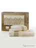 Комплект полотенец с жаккардовым рисунком создаст атмосферу красоты, тепла в Вашей ванной комнате и долгое время будет радовать вас теплом, мягкостью и неизменным качеством. Размер: 30х50 см - 1штука, 50х100 см - 1штука, 70х140 см - 1штука.