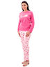 Костюм домашний женский. Однотонная толстовка с длинными рукавами и круглым вырезом. Передняя деталь украшена вышивкой с бабочками, повторяющими рисунок на брюках. Брюки длинные прямые из набивного флиса, пояс на комфортной резинке.