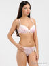 Потрясающий комплект женского белья состоит из бюстгальтера и трусиков стринги. Бюстгальтер с тонкими поролоновыми чашечками с косточками. Съемные вкладыши создают эффект push-up. Бюст декорирован кружевной неэластичной вставкой и тонким бантиком с бусинами. Тонкие слабоэластичные регулируемые бретели. Застежка на два крючка на одно из двух положений. Трусы стринги со средней линией талии. Пояс и проймы дополнены резинками. Ластовица дополнена хлопковой подкладкой. Боковины выполнены из тонкого, эластичного кружева.