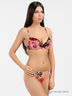 Потрясающий комплект женского белья состоит из бюстгальтера и трусов стринги. Бюстгальтер с тонкими поролоновыми чашечками на косточках. Съемные толстые вкладыши создают эффект push-up. Верхняя часть бюста дополнена рисунком, созданным напылением флока. Бюстгальтер декорирован бантом из бархатистой ленты и подвеской со стразами и бусиной. Тонкие эластичные бретели. Застежка на крючок на одно из двух положений. Трусики стринги выполнены из тонкой, мягкой сеточки. Пояс и проймы дополнены резинками. Ластовица с хлопковой вставкой.