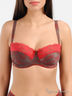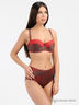 Яркий комплект женского белья состоит из бюстгальтера и трусов слипы. Бюстгальтер балконет с тонкими поролоновыми чашечками на косточках. Верх чашечек выполнен из неэластичного кружева. В месте соединения косточек красочный бантик с подвеской. Слабоэластичные широкие регулируемые бретели. Застежка на два крючка на одно из двух положений. Трусы слипы с высокой линией талии. Проймы и пояс дополнены резинкой. Ластовица дополнена хлопковой подкладкой.