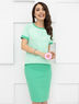 Первая встреча с солнцем. Обворожительный костюм, в котором вы светитесь ярче звезды. Блуза с фактурным рисунком в оттенке «зеленый чай». Юбка с поясом-резинкой в оригинальном зеленом цвете «весенний лес». Ловите лучи очарования