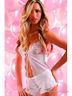 Нежная романтическая сорочка (baby doll) с гипюровыми вставками на груди. Завязывается спереди. В комплект входят шортики из нежного, мягкого материала.
