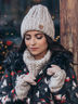 Комплект: шапка + хомут+ перчатки. Вязаная шапка-бини и хомут с узором-косичка. Вязанная часть перчаток - съемная.