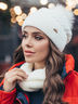 Зимний комплект. Шапка-бини с бубоном из натурального меха. Модель утеплена мягкой флисовой подкладкой. Лаконичный вязаный хомут.