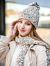Стильный и яркий комплект, выполнен из разноцветных нитей с объемным эффектом, в комплект входит шапка и шарф одного дизайна. Шапка с помпоном и резинкой, шарф с резинкой по краям. Отличный комплект для молодежного образа.